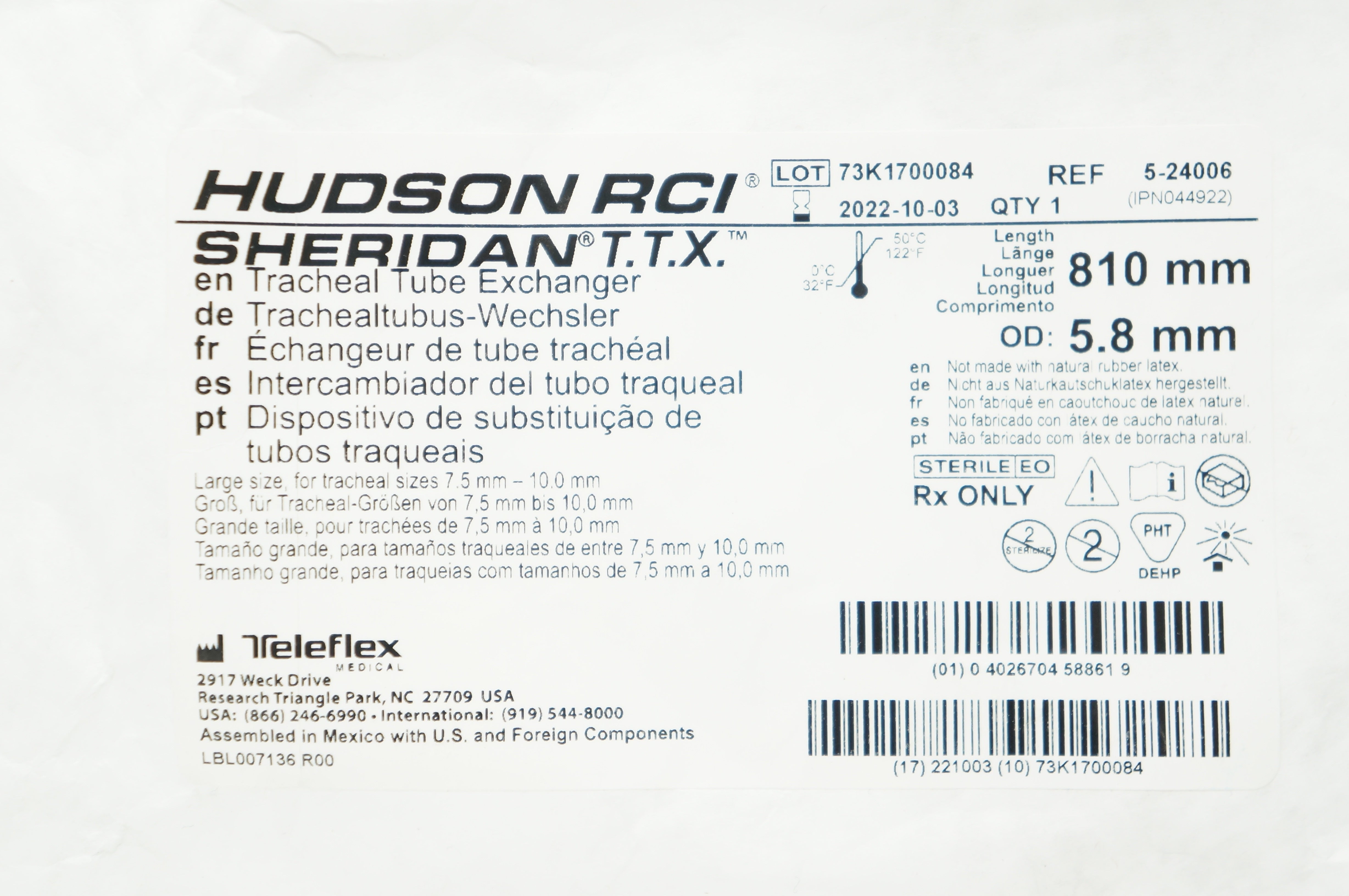 - Teleflex 5-24006 Hudson RCI Sheridan Tracheal Tube Exchanger 810mm x 5.8mm OD