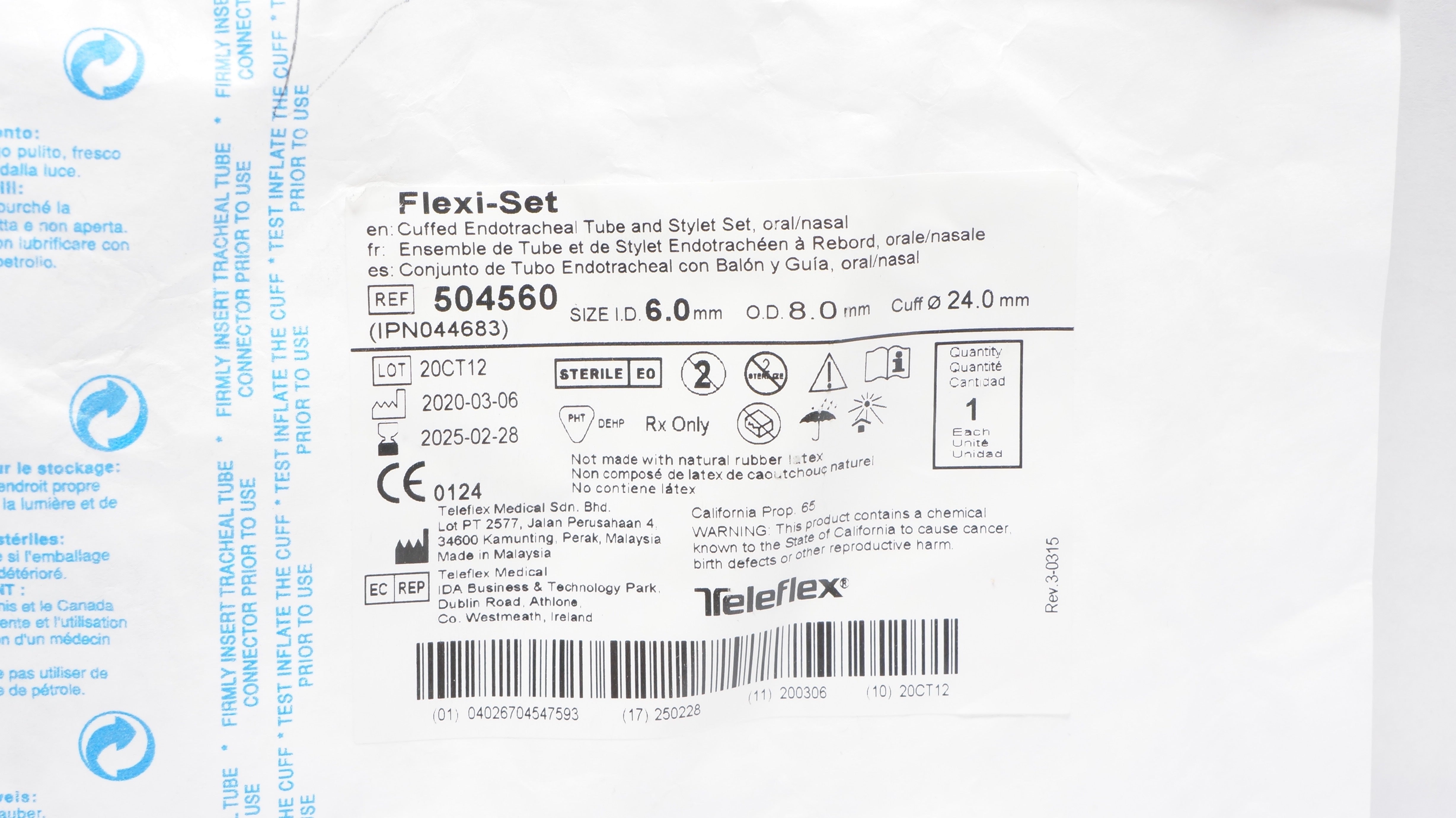 - Teleflex 504560 Cuffed Endotracheal Tube Stylet Set 6 x 8.0 x 24mm (x)