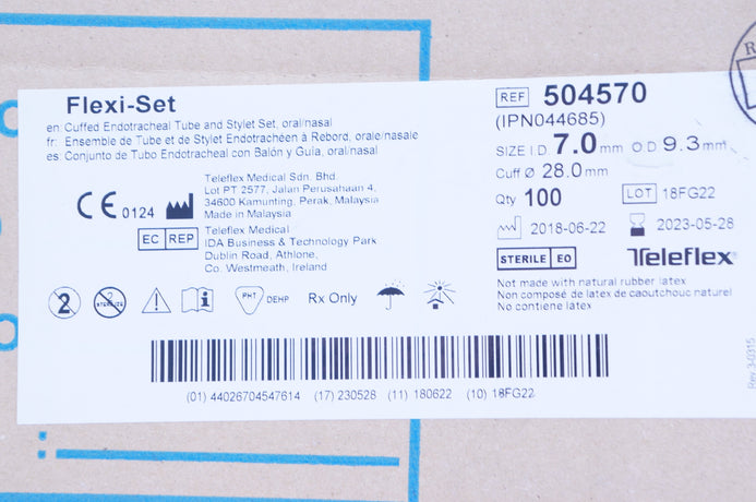 - Teleflex 504570 Flexi-Set Endotracheal Tube & Stylet 7.0x9.3x28.0mm -Case of 100