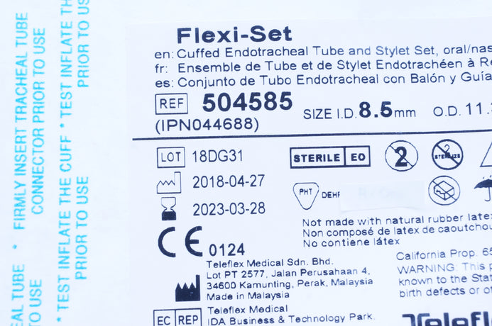 - Teleflex 504585 Flexi-Set Endotracheal Tube And Stylet 8.5 ID x 11.3 OD x 30.0mm