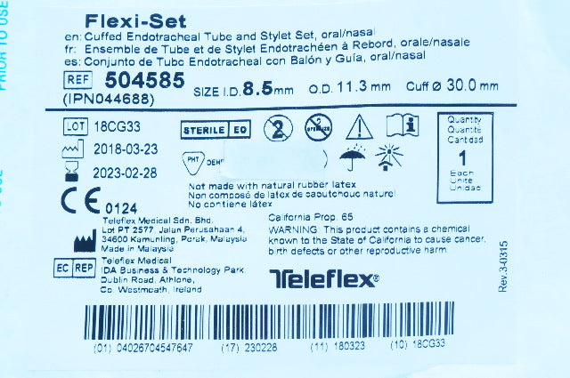 - Teleflex 504585 Flexi-Set Endotracheal Tube & Stylet 8.5 ID x 11.3mm OD x 30.0mm