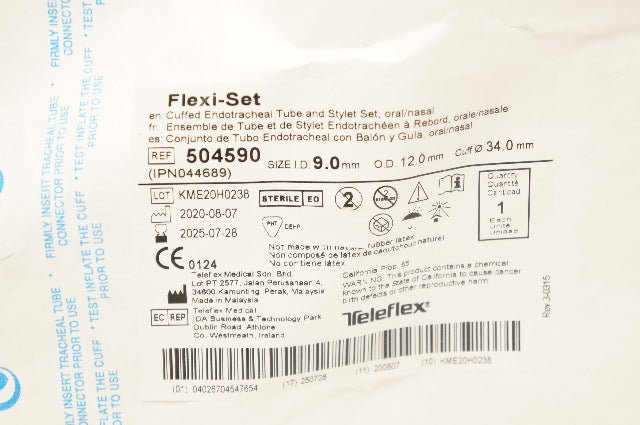 - Teleflex 504590 Cuffed Endotracheal Tube & Stylet Set 9.0ID x 12.0mm OD x 34.0mm