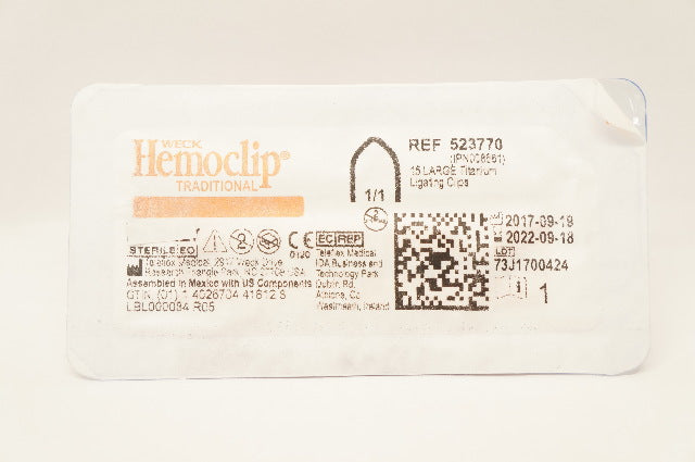 Teleflex 523770 Weck Hemoclip Traditional 15 Large Titanium Ligating Clips