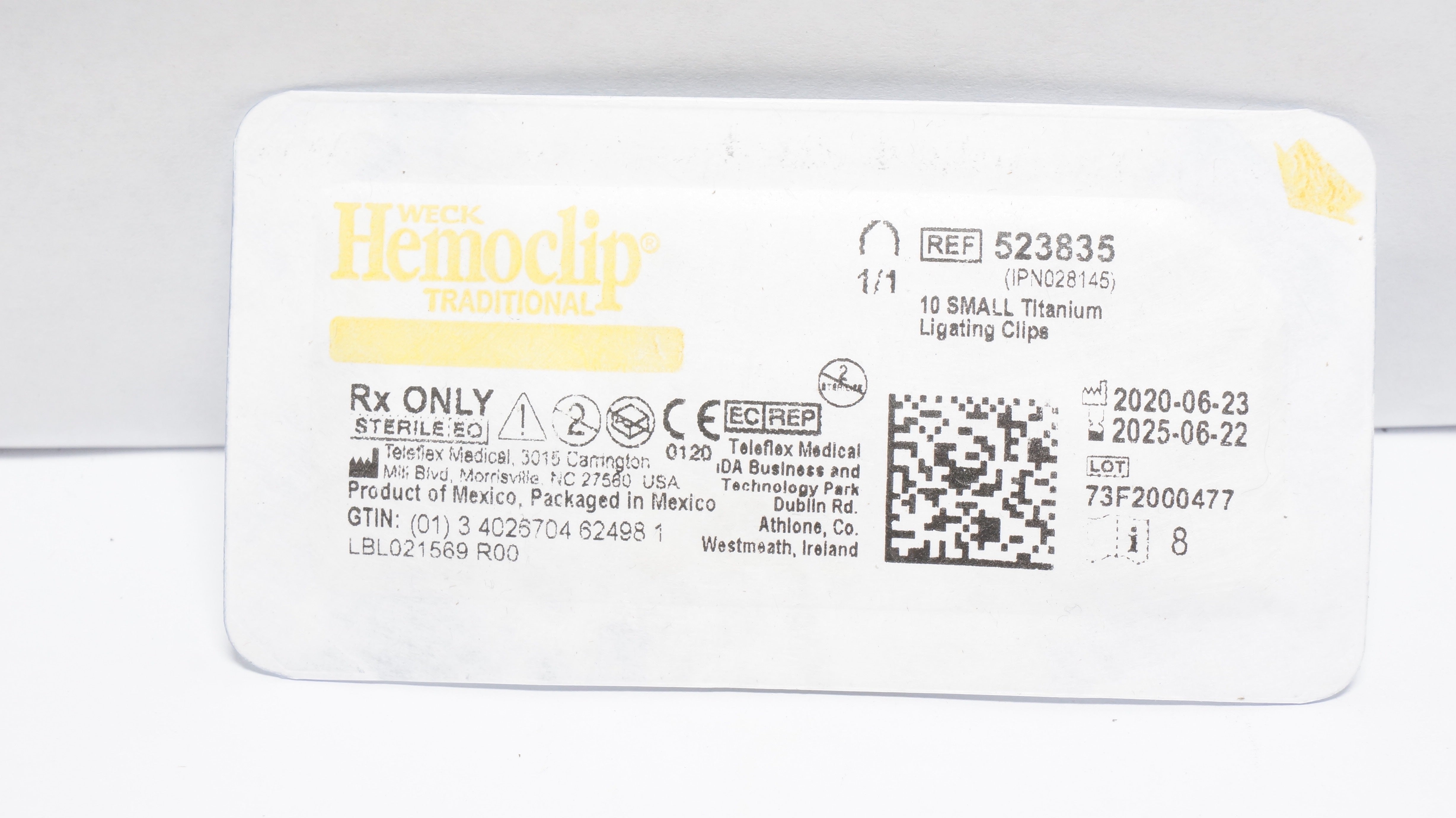 - Teleflex 523835 Weck Hemoclip 10 Traditional Small Titanium Ligating Clips (x)