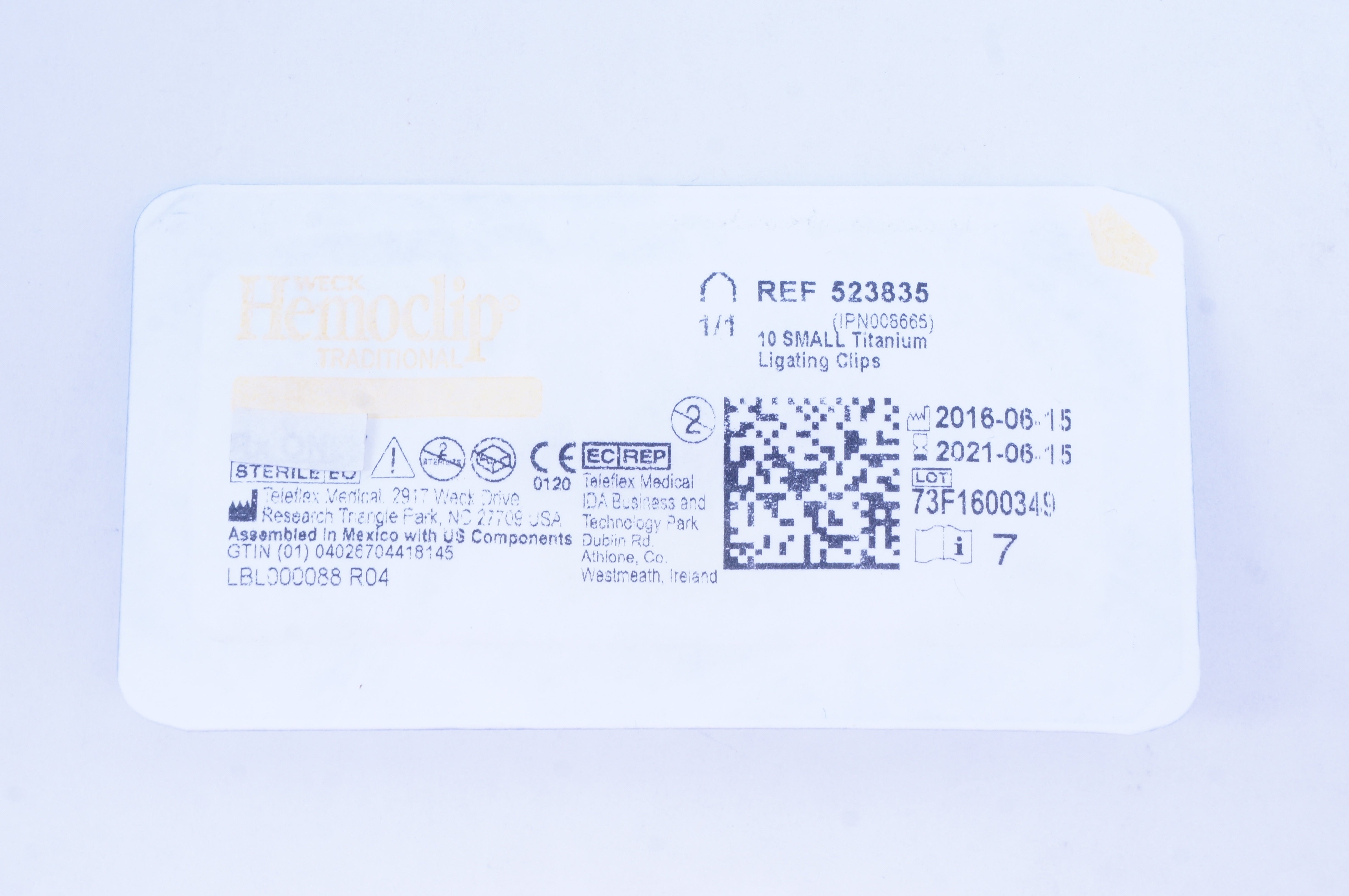 Teleflex 523835 Weck Hemoclip Traditional Small Titanium Ligating Clips (x)