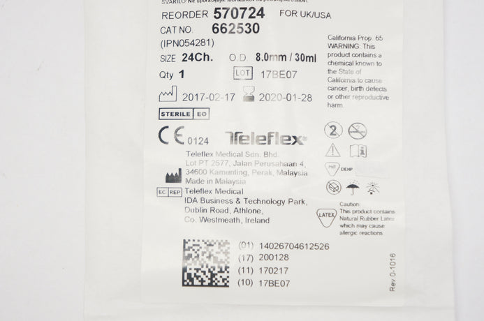 Teleflex 570724 Rusch Softsimplastic 2 Way Foley Couvelaire Tip Cath. 24Ch. (x)