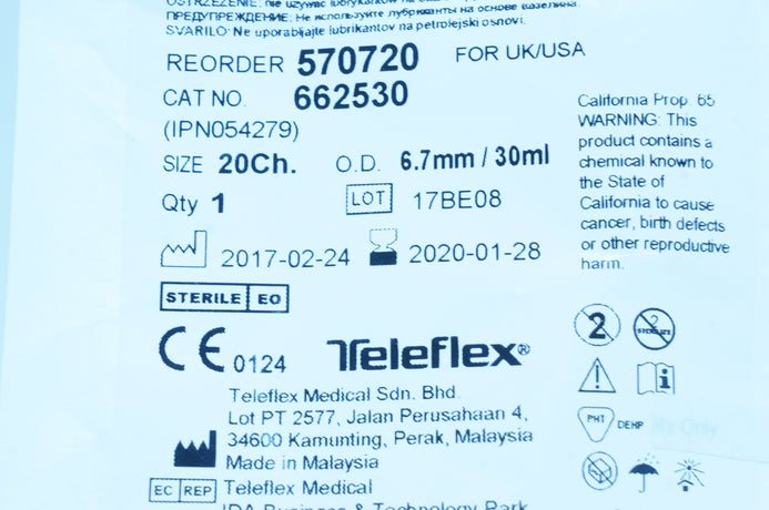 Teleflex 662530 Soft Simplastic 2 Way Foley Couvelaire Tip Catheter 20Ch x  6.7mm/30ml