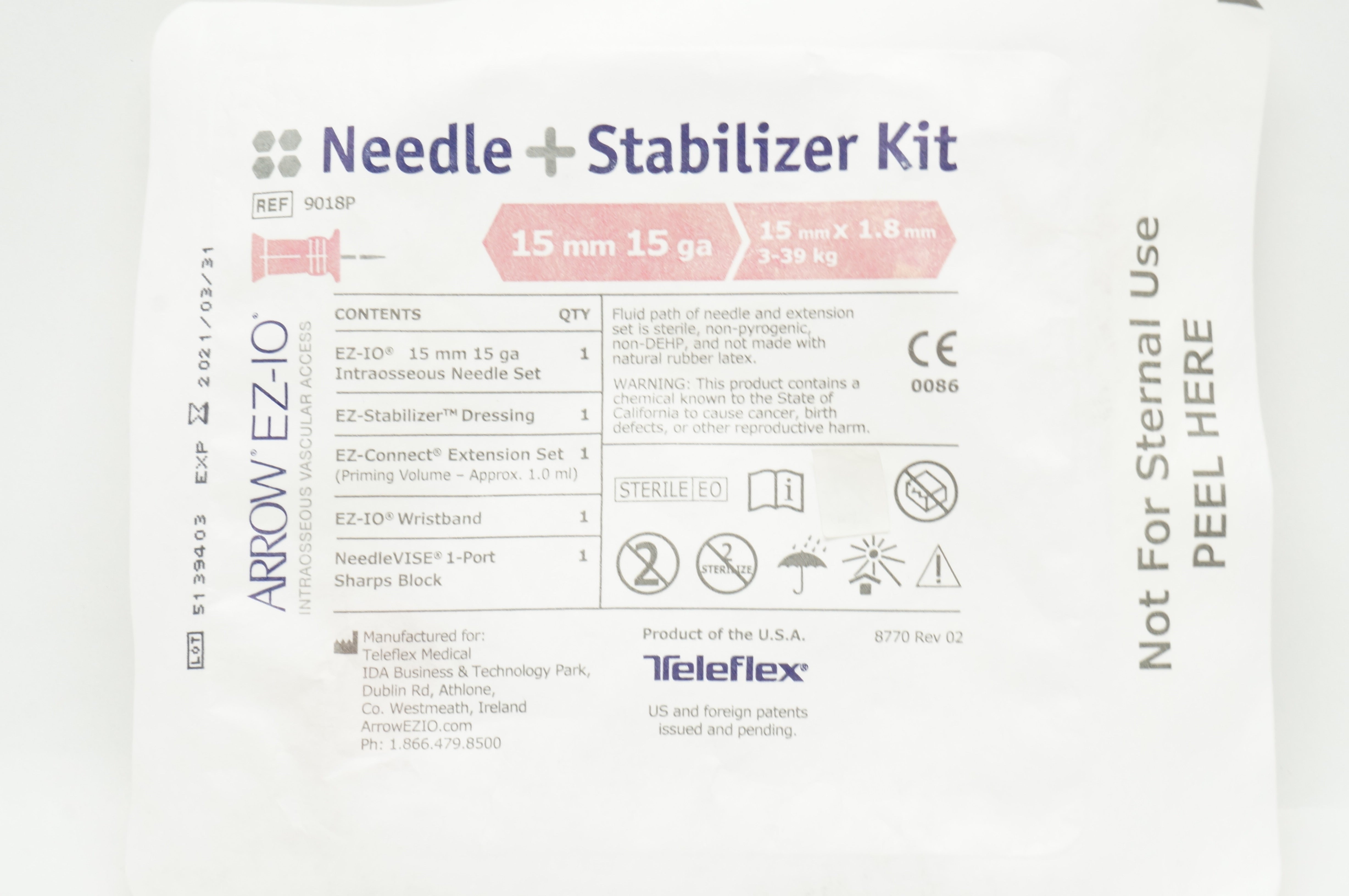 - Teleflex 9018P Arrow EZ-IO Ndle. + Stabilizer Kit 15mm x 15Ga x 1.8mm 3-39kg(x)