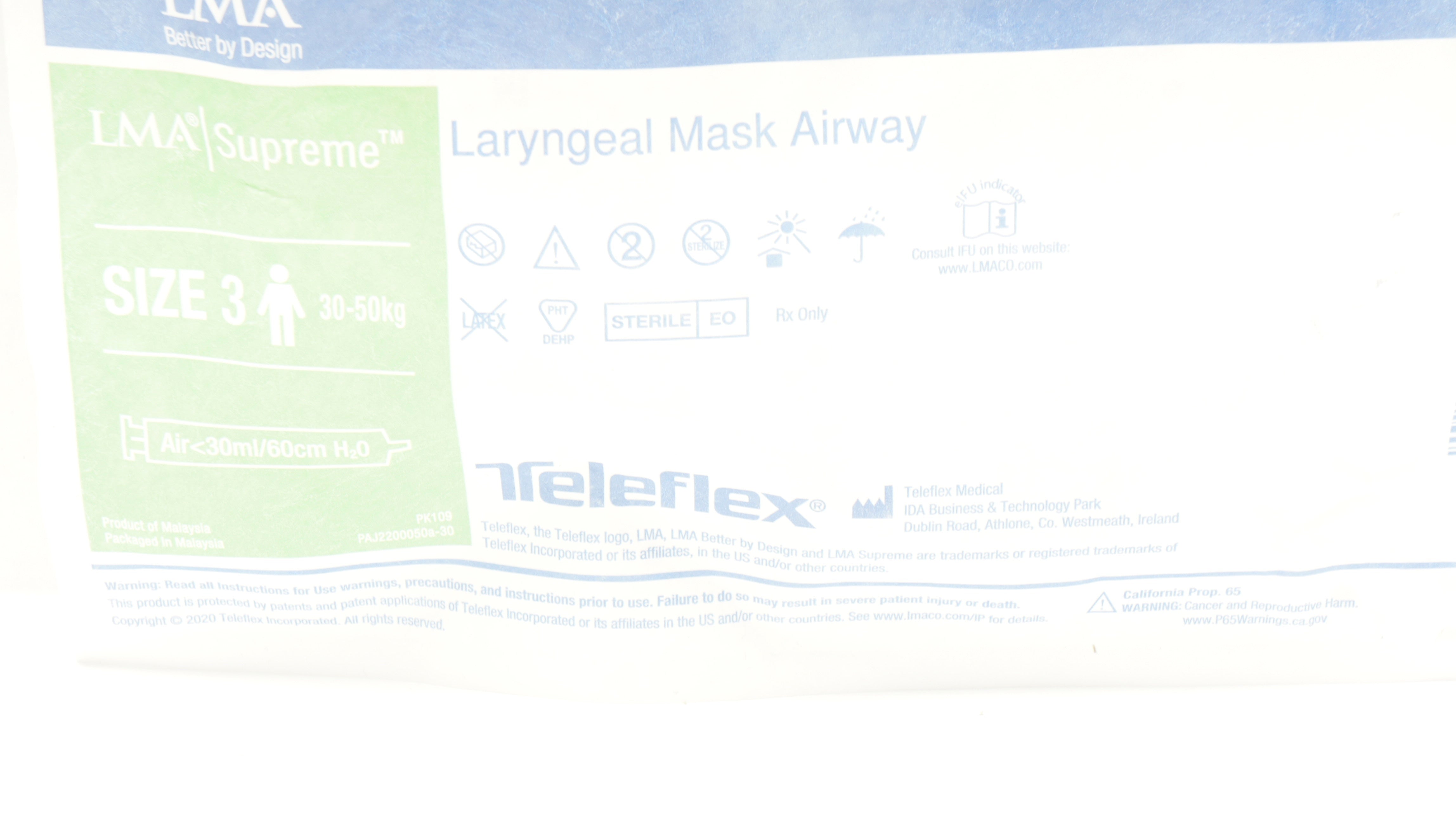- Teleflex ALBF030SU LMA Laryngeal Mask Airway, Size 3 30-50kg, <30ml/60cm H2O(x)