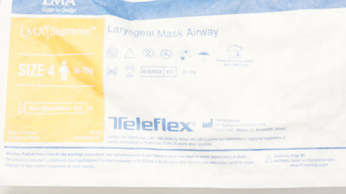 - Teleflex ALBF040SU LMA Laryngeal Mask Airway Size 4 50-70kg, Air<45/60cm H2O (x)