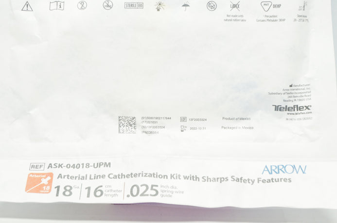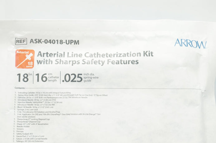 - Teleflex ASK-04018-UPM Arrow Arterial Line Catheterization Kit 18Ga 16cm 0.25in
