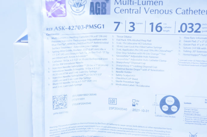 - Teleflex ASK-42703-PMSG1 Multi-Lumen Central Venous Cath.zation Kit 7Fr x 16cm