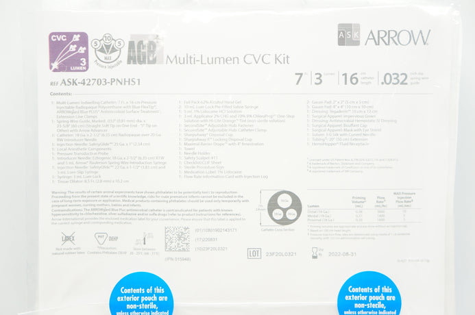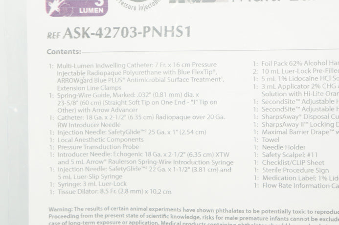- Teleflex ASK-42703-PNHS1 Arrow Multi-Lumen CVC Kit 7Fr. x 16cm