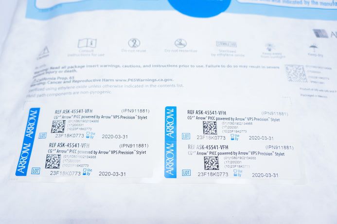 • 1 Indwelling Catheter with Chloragard Technology and TaperFree Design: 4.5Rfx 55cm Pressure Injectable Radiopaque Polyurethane with Blu FlexTip Feature, Extension Line Clamps, Contamination Guard , Arrow VPS Precision Stylet, Thohy-Borst Adapter and Marking Device