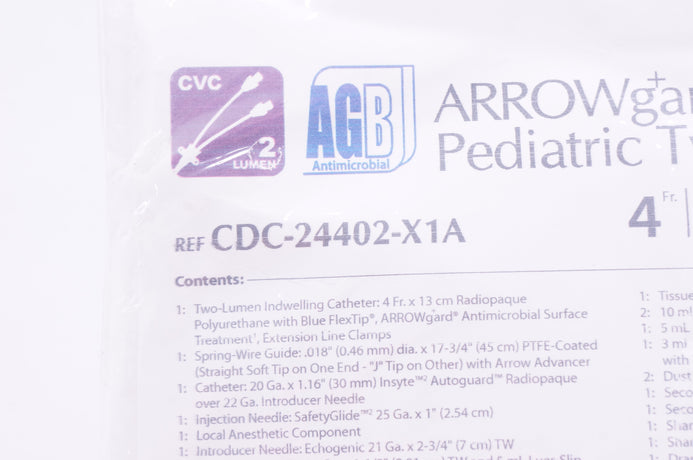 Teleflex CDC-24402-X1A ARROWgard+ Blue Pediatric Two-Lumen CVC Kit 4Fr x 13cm(x)