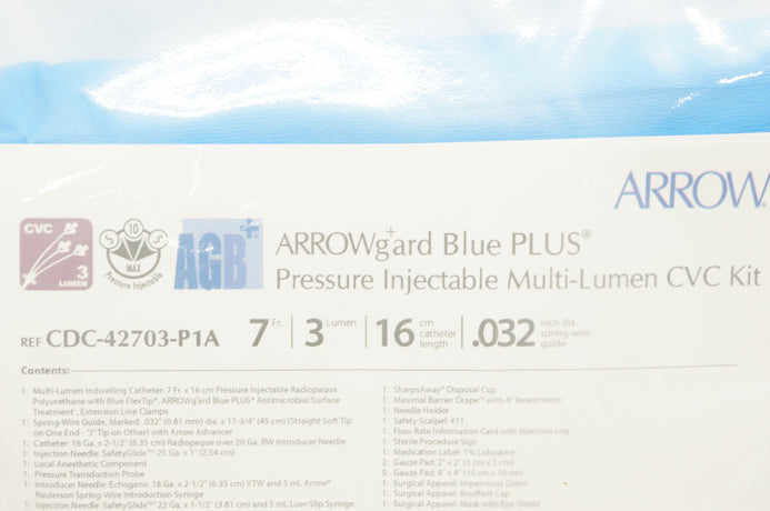 - Teleflex CDC-42703-P1A Arrow Pressure Injectable Multi-Lumen CVC Kit 7Fr (x)