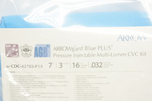 - Teleflex CDC-42703-P1A Arrow Pressure Injectable Multi-Lumen CVC Kit 7Fr x 16cm