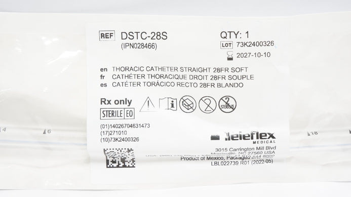 Teleflex DSTC-28S Thoracic Catheter Straight 28 FR. Soft