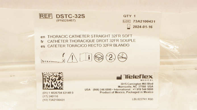 Teleflex DSTC-32S Thoracic Catheter Straight Soft 32Fr