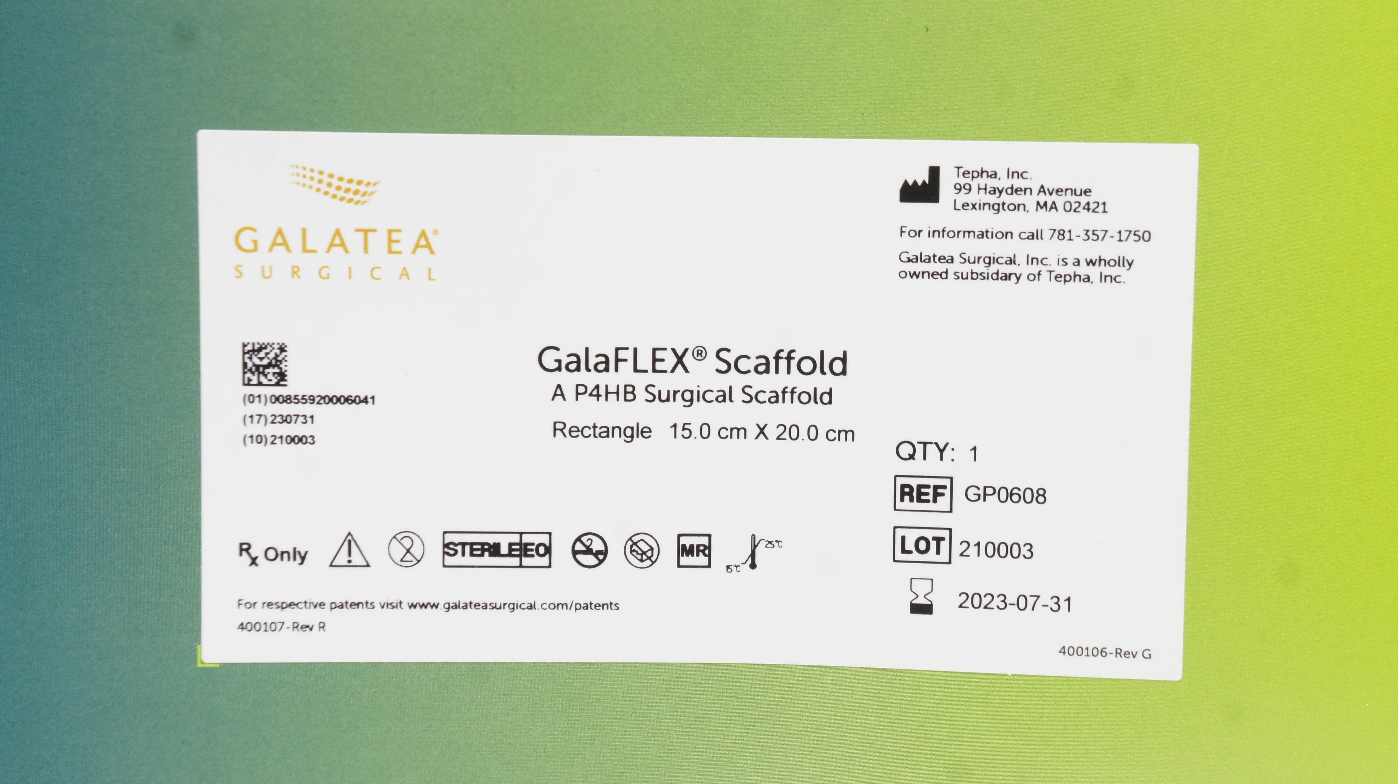 - Tepha GP0608 Galatea GalaFLEX Bioresorbable Surgical Scaffold 15.0cm x 20.0cm(x)