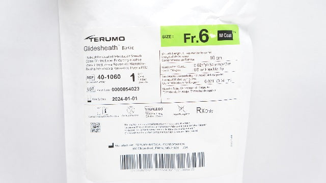 - Terumo 40-1060 Glidesheath Basic Hydrophilic Coated Introducer Sheath 6Fr (x)