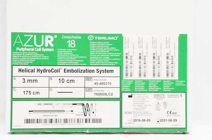 - Terumo 45-480310 Azur Helical HydroCoil Embolization System (x)