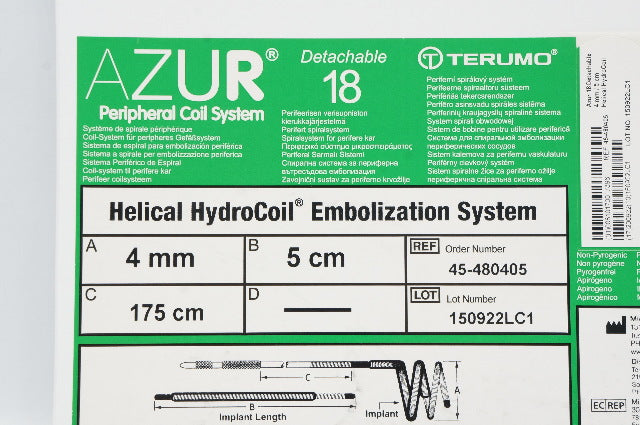 - Terumo 45-480405 Helical HydroCoil Embolization System 4mm x 5cm x 175cm (x)
