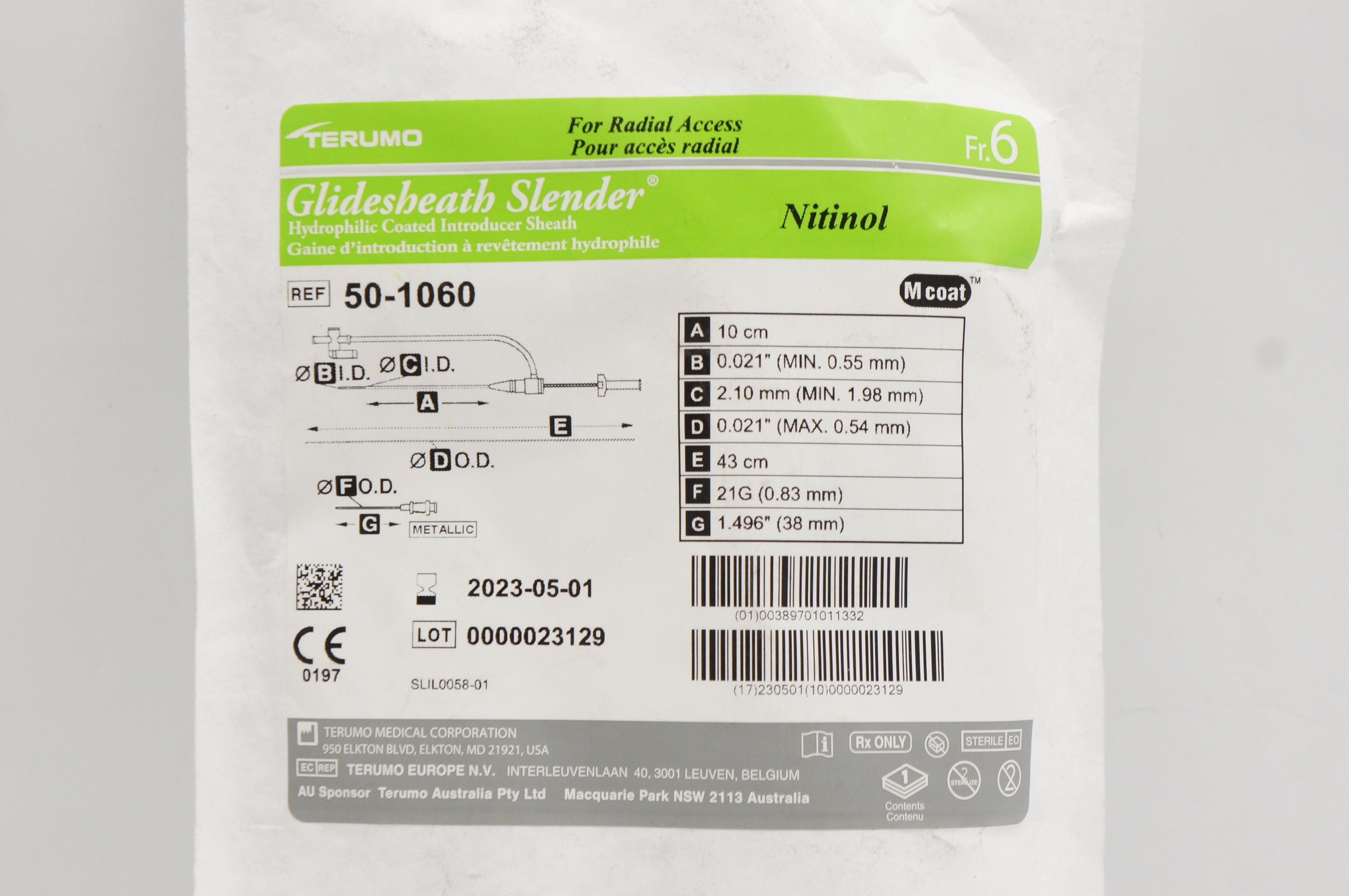 Terumo 50-1060 Glidesheath Slender Hydrophilic Coated, Nitinol Kit 6Fr.