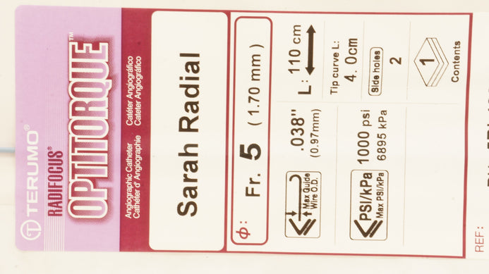 - Terumo 5BL4021A RadiFocus Optitorque Angiographic Cath.Sarah Radial 5Frx110cm(x)