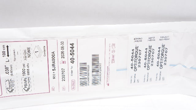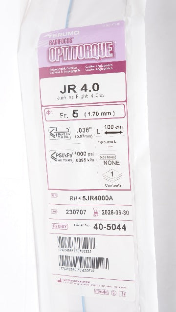 Terumo 5JR4000A Radifocus Optotorque Angiographic Catheter JR 4.0 5FR x .038inch x 100cm