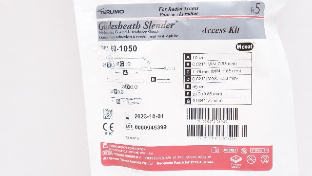 - Terumo 60-1050 Glidesheath Slender Hydrophilic Coated Introducer Sheath 5Fr. (x)