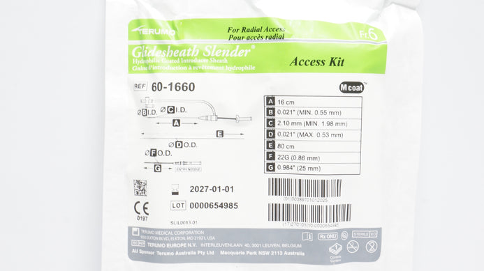 - Terumo 60-1660 Glidesheath Slender 6Fr Introducer Sheath, Access Kit