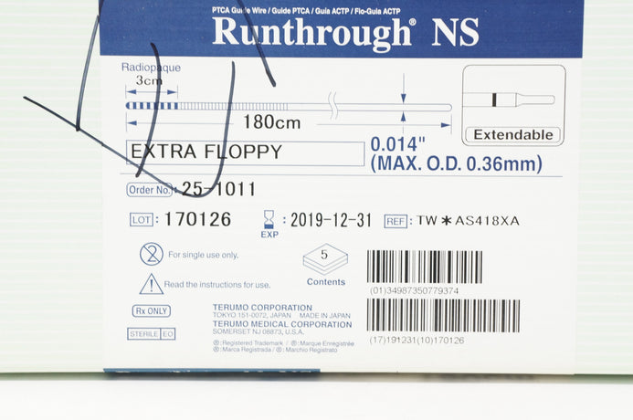 Terumo AS418XA Runthrough NS Extra Floppy 180cm - Box of 5(x)