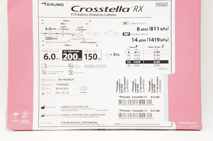 - Terumo BD-F60200LR Crosstella RX PTA Balloon Dilatation Cath 6.0x200mm 150cm (x)