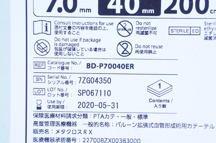 - Terumo BD-P70040ER PTA Balloon Dilataion Cath. 7.0mm x 40mm x 200cm (x)