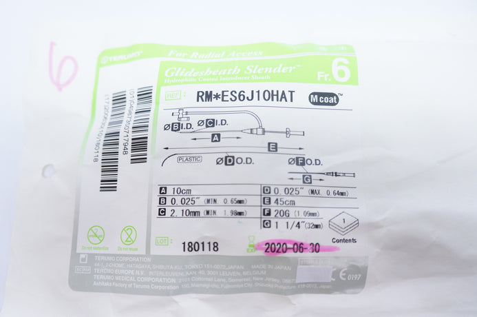 Terumo ES6J10HAT GlideSheath Slender A-Kit 6F x 10cm, 20G (x)