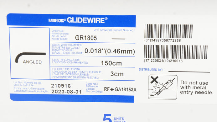 - Terumo GA18153A Radifocus Glidewire Guide Wire, Angled 0.018in - Box of 3 (x)