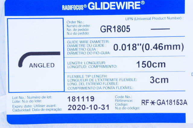 - Terumo GA18153A Radifocus Glidewire Guide Wire, Angled 0.018inch x 150 x 3cm (x)