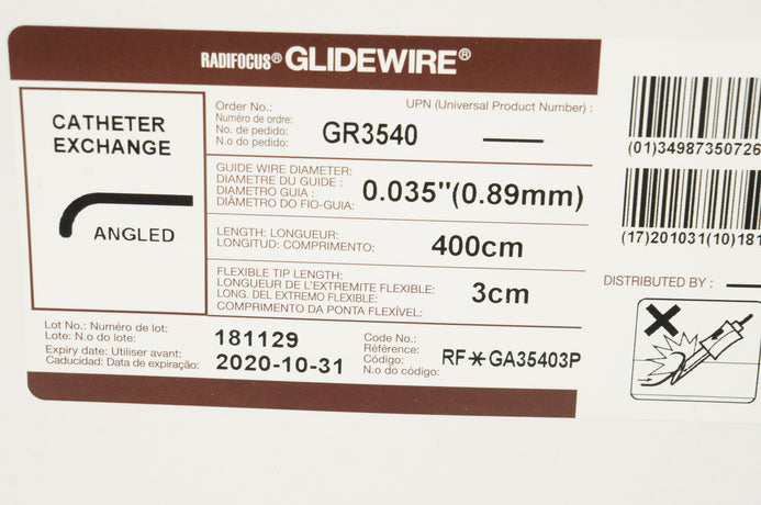 Terumo GA35403P Radifocus Glidewire Catheter Exchange Angled 0.035inch x 400cm x 3cm