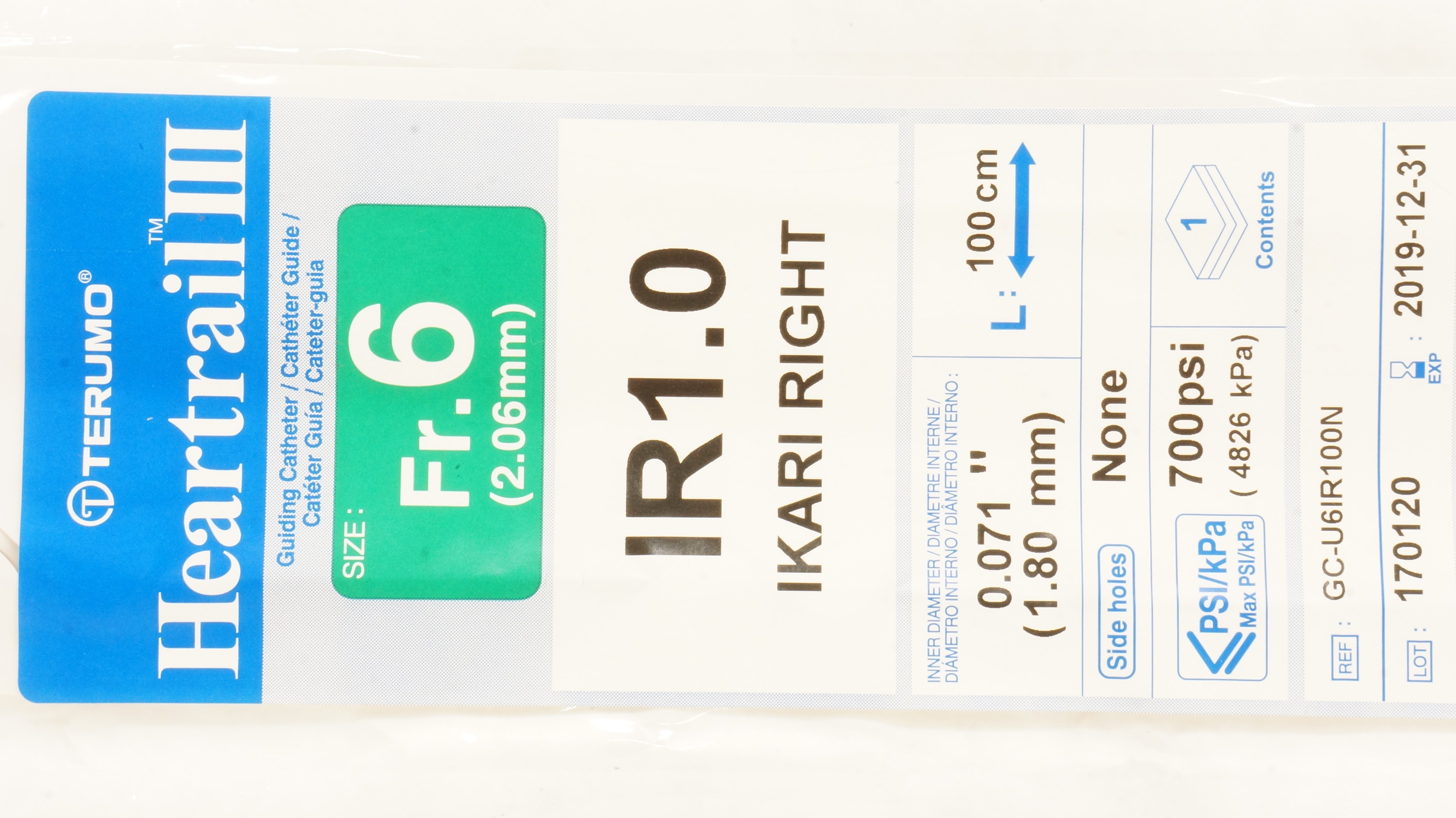 Terumo GC-U6IR100N Heartrail III Guidung Cath. IR1.0 Ikari Right 6Fr x 100cm (x)