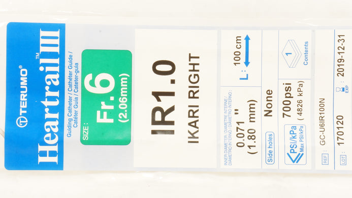 - Terumo GC-U6IR100N Heartrail III Guidung Cath. IR1.0 Ikari Right 6Fr x 100cm (x)