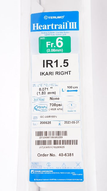 - Terumo GC-U6IR150N Heartrail III IR1.5 Ikari Right Guiding Cath. 6Fr x 100cm (x)