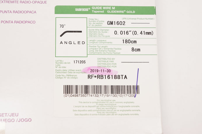 - Terumo GM1602 Guide Wire M 0.016inch x 180cm x 8cm (x)