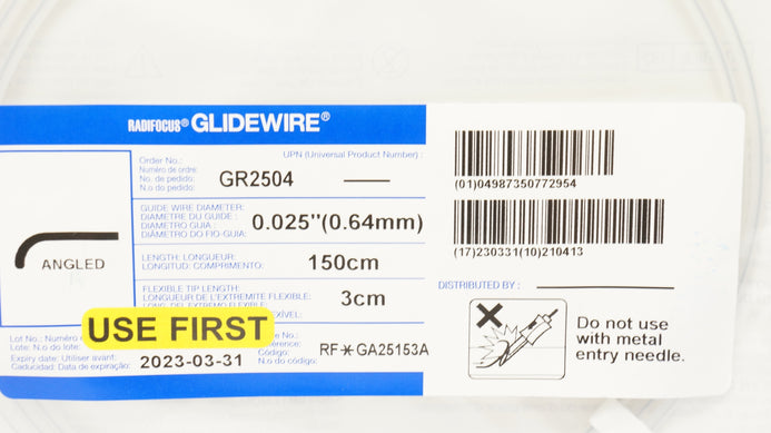 Terumo GR2504 Radifocus Glidewire Radiopaque Angled 0.025inch x 150cm x 3cm