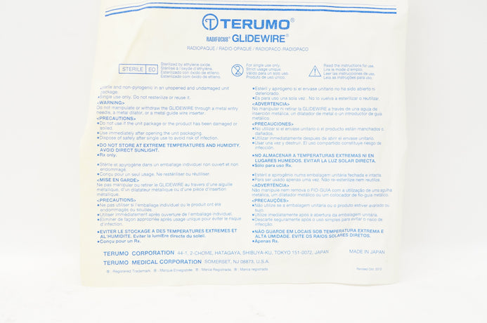 - Terumo GR2525 Radifocus Glidewire Angled 0.025 inch x 180cm x 3cm (x)