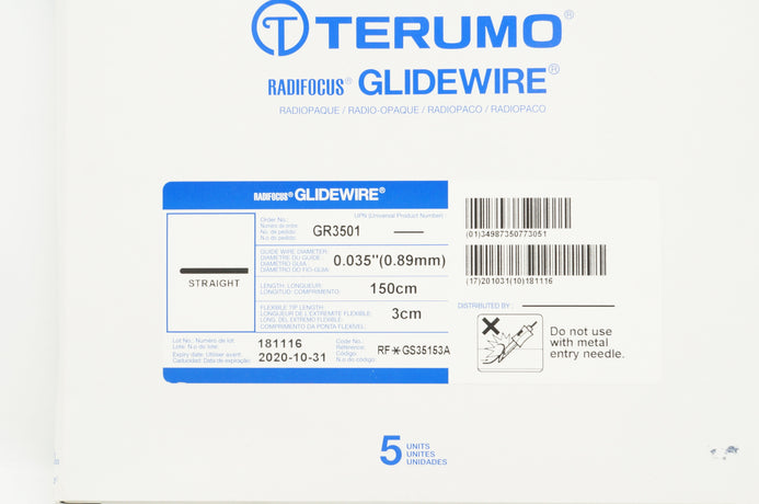 - Terumo GR3501 Radiofocus Glidewire Straight 0.035inch x 150 x 3cm (x) - Box of 3