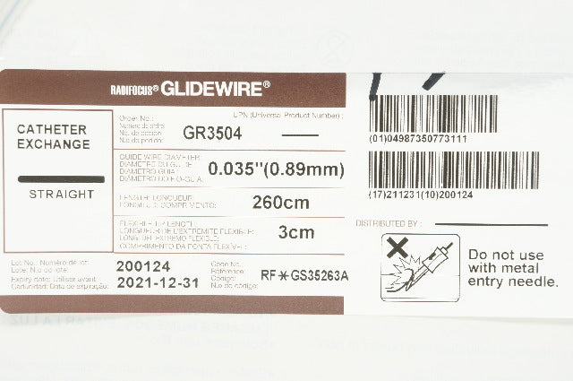- Terumo GR3504 Glidewire Straight 0.035inch x 260cm x 3cm
