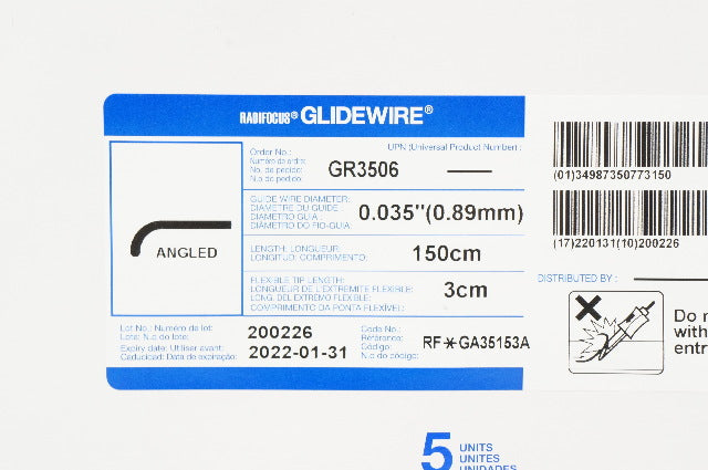 - Terumo GR3506 Radifocus Glidewire, Angled 0.035inch x 150cm x 3cm