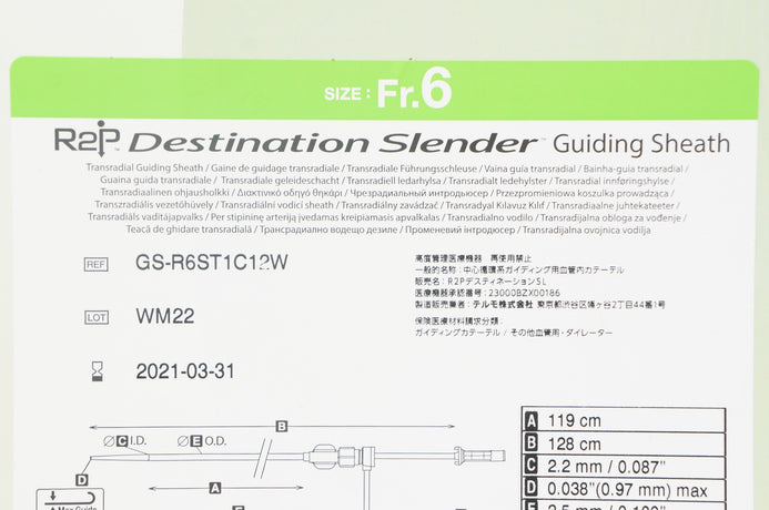 Terumo GS-R6ST1C12W Destination Slender Transradial Guiding Sheath 6Fr (x)