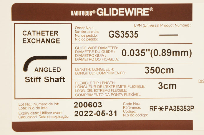Terumo GS3535 Radifocus Glidewire Catheter Exchange Angled Stiff Shaft 0.035inch 350cm 3cm